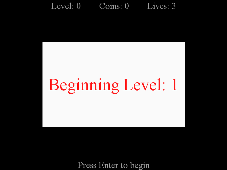 Instructions on how to get the game running can be found in README.txt, which is in the same folder as the source code. When you first run the game, your screen should look like the image below.