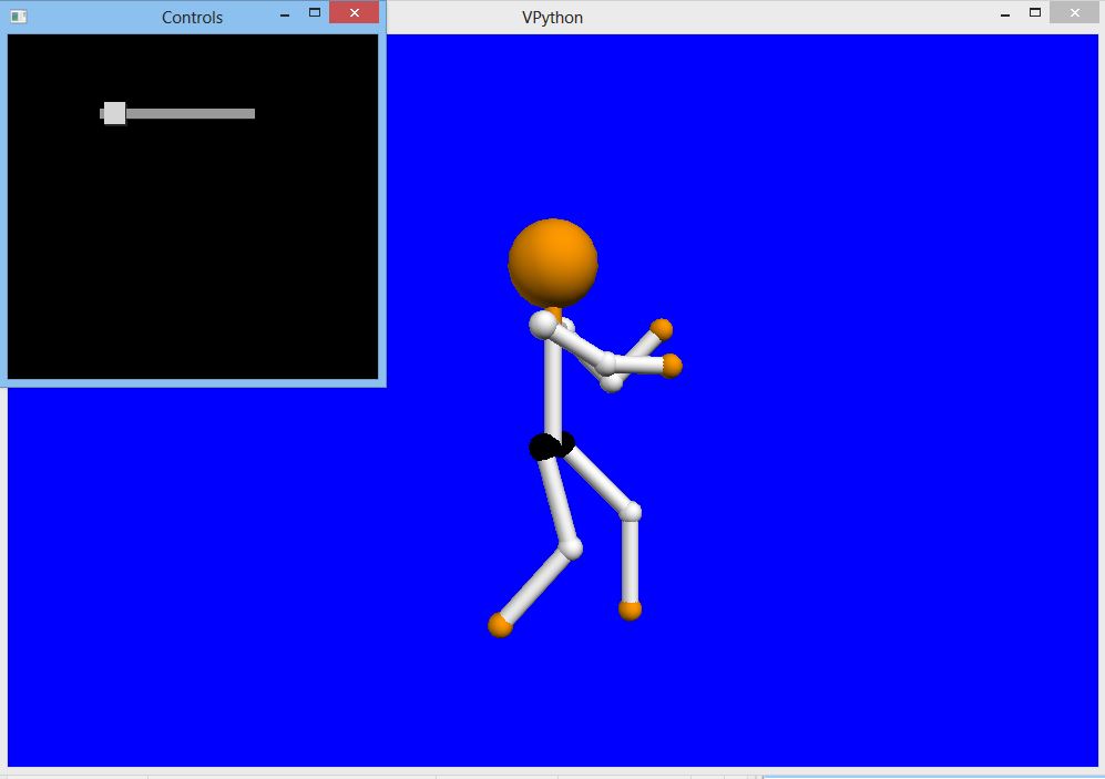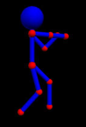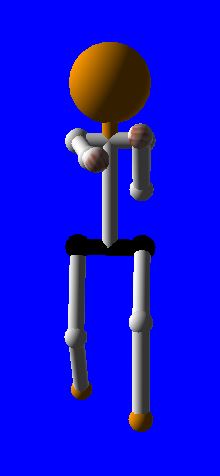 I then positioned the legs, which were slightly more difficult because the angles were not as nice and they required rotations about multiple axes at times. I followed the same steps as repositioning the arms, building off of the frame for the hips, first repositioning the upper leg and then the lower leg with respect to the upper leg. After this step, I had the complete starting position set.
