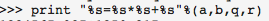 It would be nice to have Python say what you did, and substitute the values of the variables into the print out. The text Python prints out exactly the way you type it in is called a \textbf{string}, and is always between double quotes. But you do want to say "q", you want to see 1250. For that you'll need a so-called formatted string. Here is how to read: